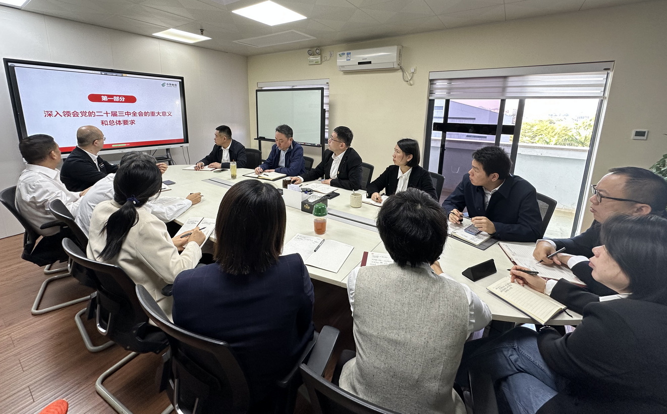 为做好专题党课的贯彻落实工作,华东中心党总支书记、总经理黄海腾主持召开专题学习会,党总支班子成员、全体中层管理人员参加。黄海腾指出,马小群书记专题党课政治站位高、理论功底深、谋划发展实,不仅对党的二十届三中全会精神有着整体和宏观的把握、鞭辟入里的分析,而且结合集团公司部署要求,立足寄递改革发展实际,具有极强的实践性和指导性。他要求,公司全体党员干部深入钻研专题党课内容,准确把握寄递改革发展的各项要求,把学习成果转化为全面推动华东中心高质量发展的思路举措。强调要在扎实开展2024年总结复盘工作基础上,高站位谋划、高标准落实新年度华东中心高质量发展的目标任务,继续发挥好直属单位的示范标杆作用,以干字当头、攻坚克难、开拓奋进的姿态,有力有序推动公司改革落地见效,为2025年寄递业务全面吹响战略反攻冲锋号角、奋力谱写改革发展新篇章贡献力量。